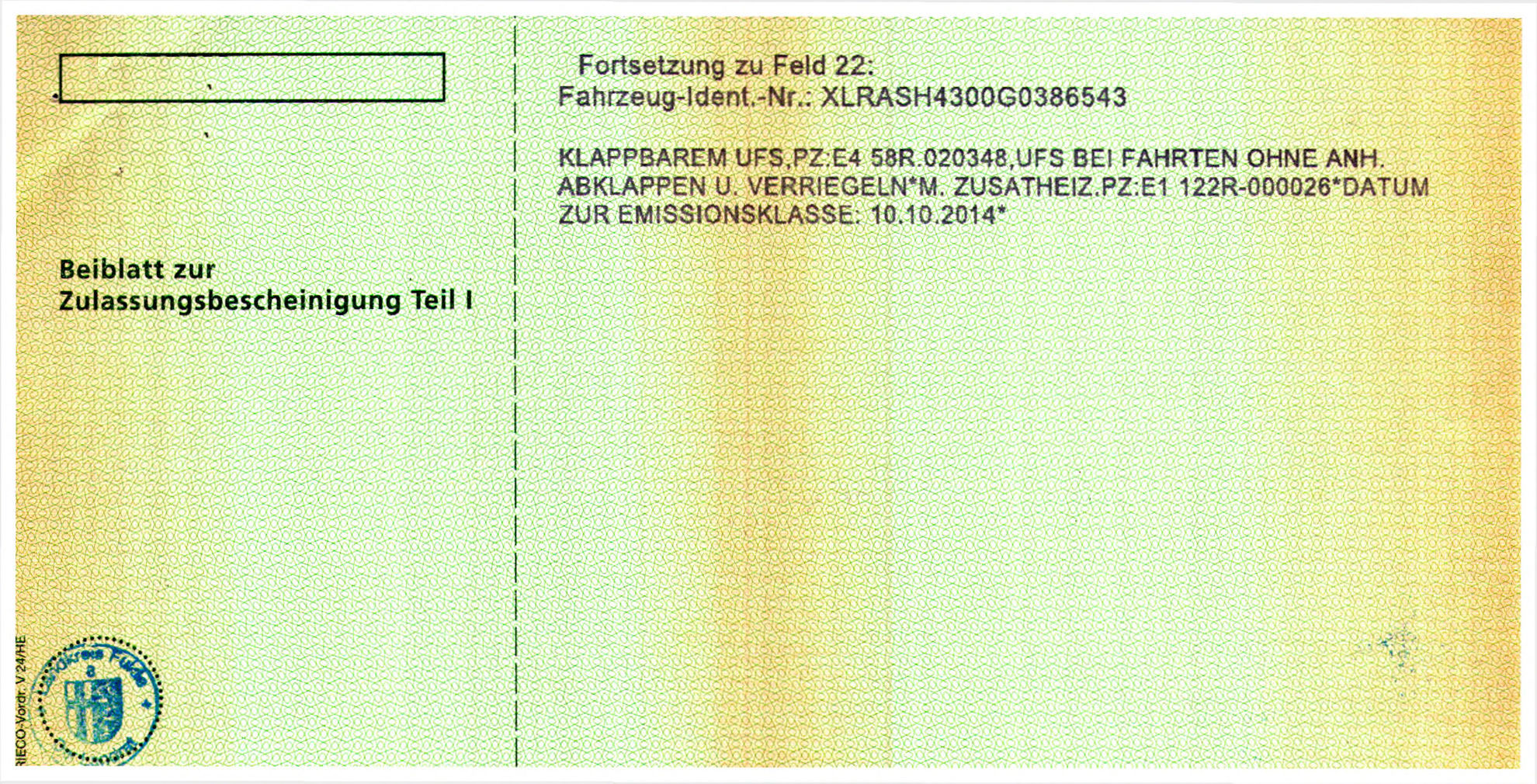 German registration / 1. Hand