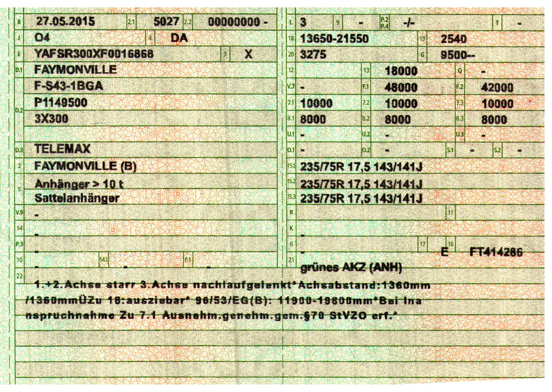 Permitted total weight (kg): 42.000