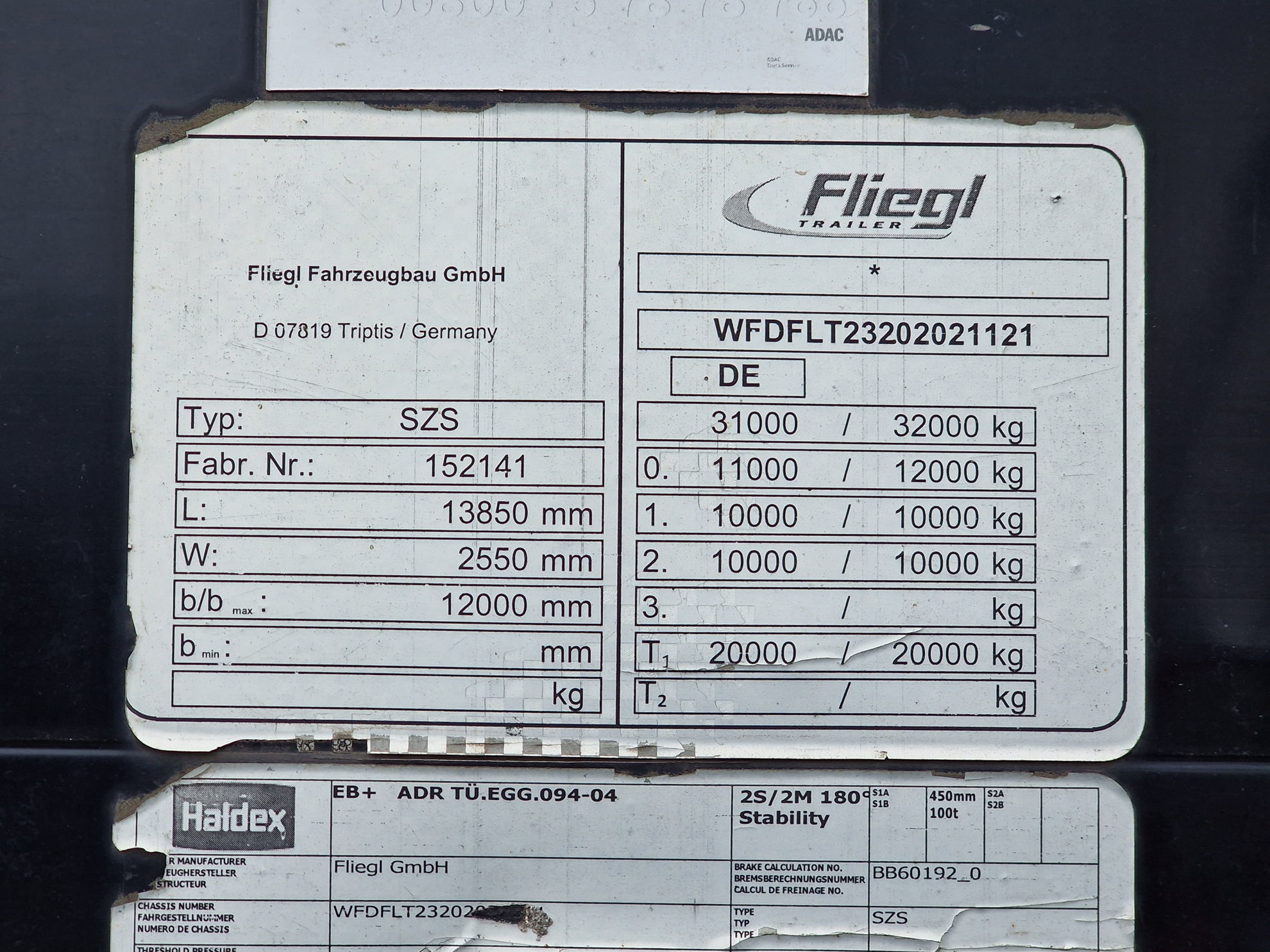 Permitted total weight (kg): 31.000