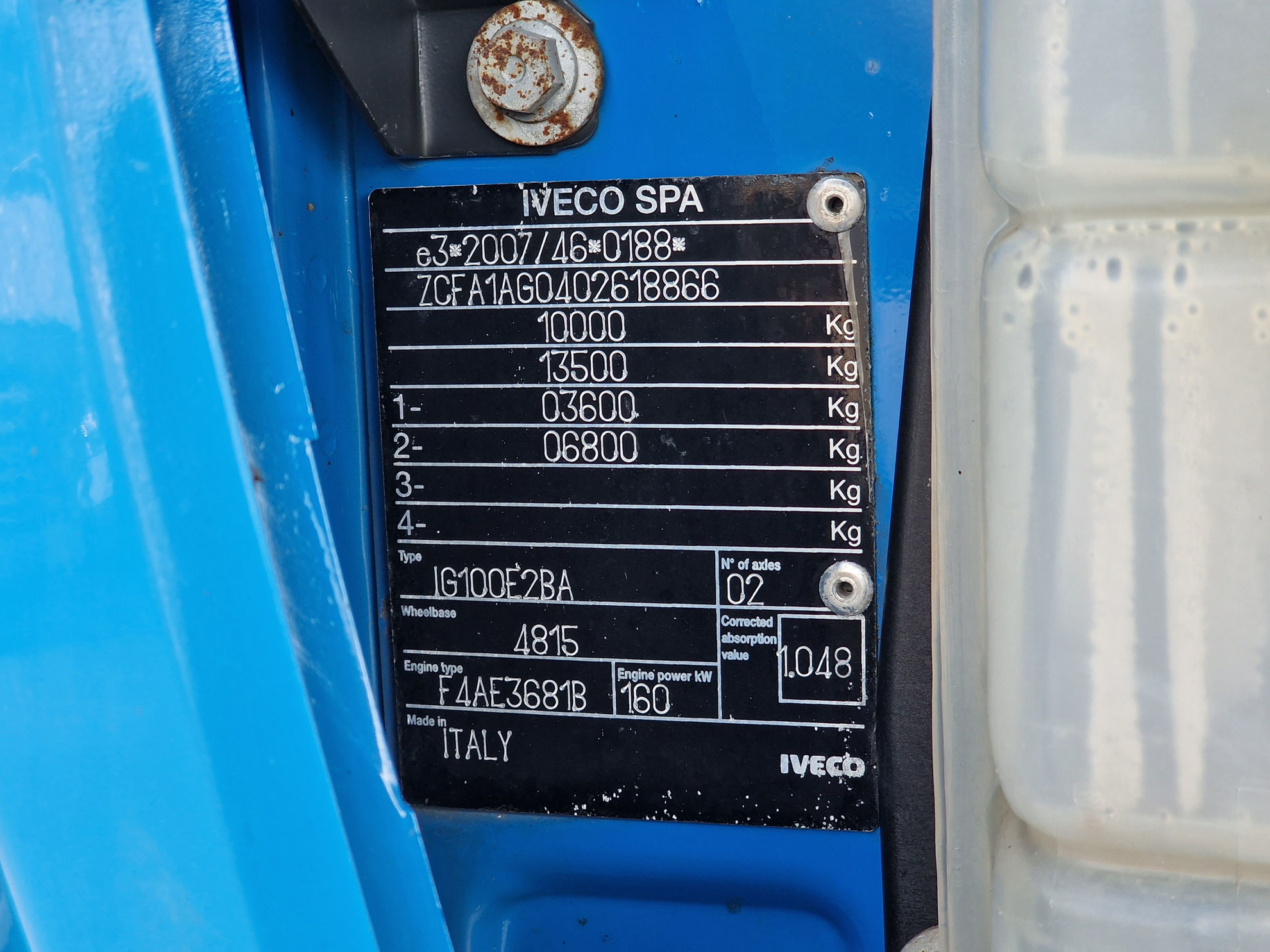 Permitted total weight (kg): 10.000