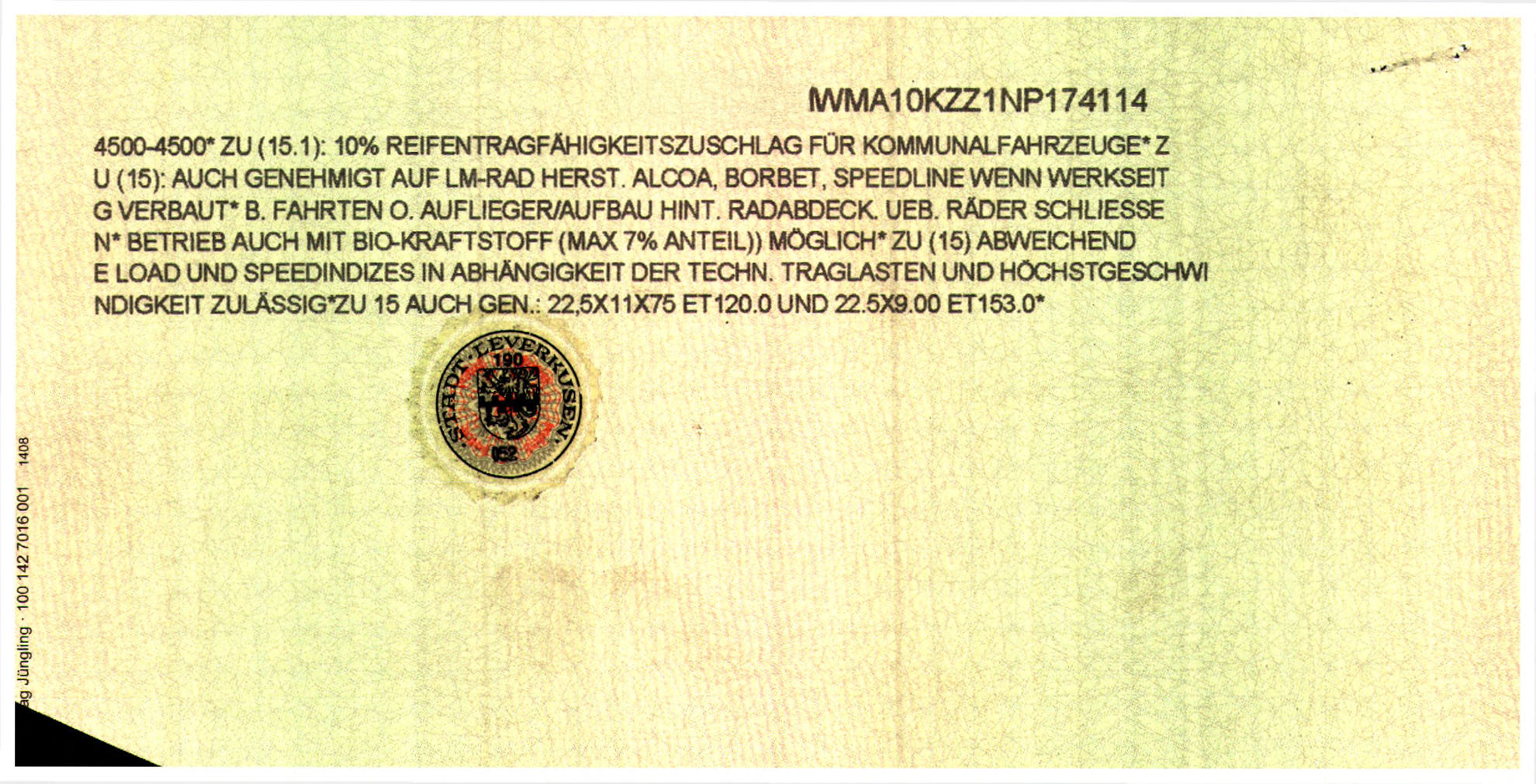VIN: WMA10KZZ1NP174114