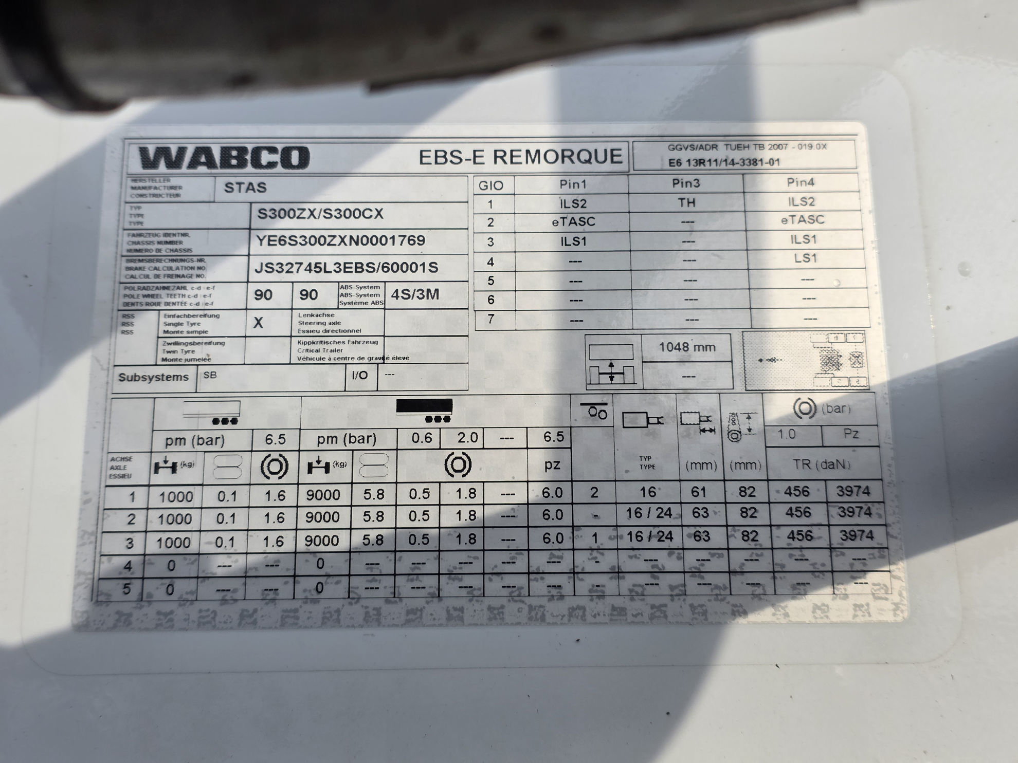 Tires: 385/65 R 22,5