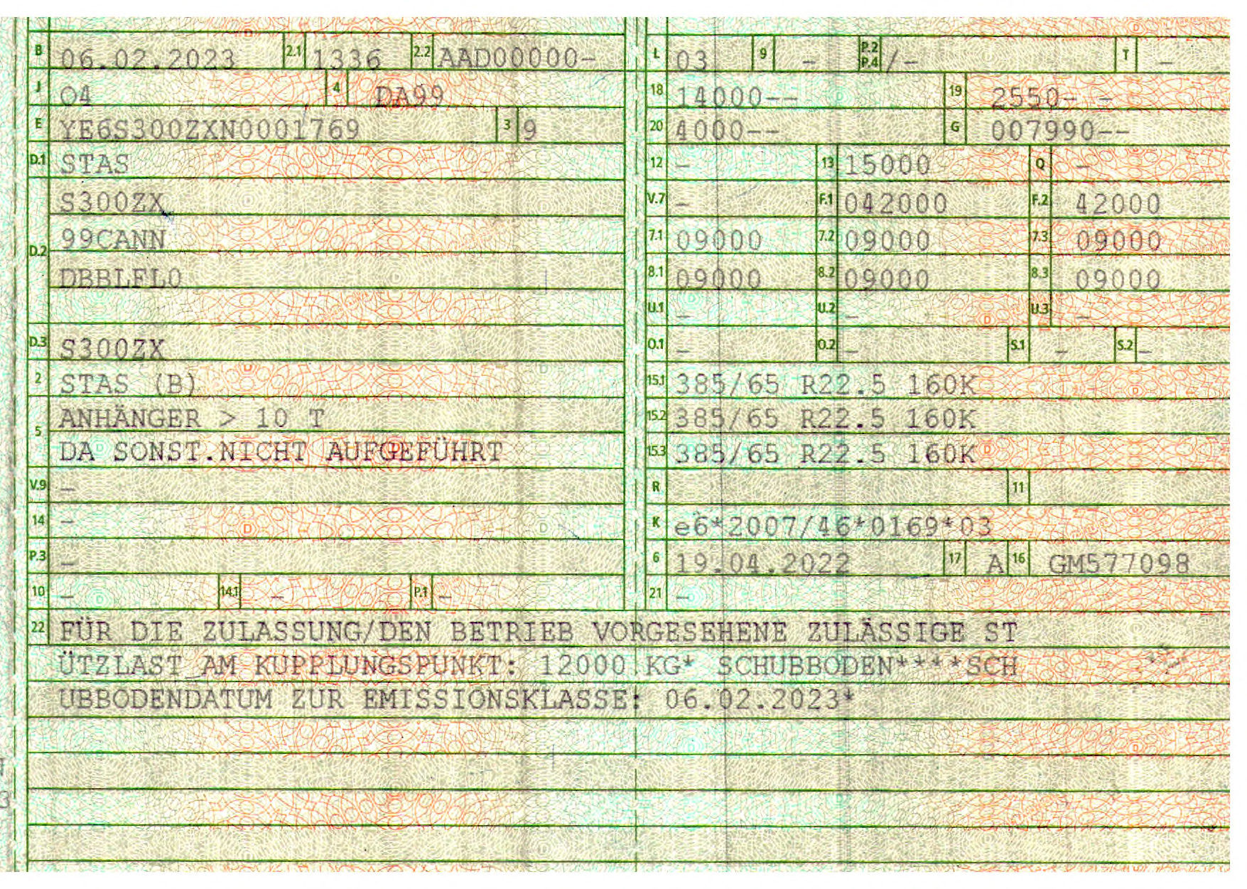 Permitted total weight (kg): 42.000