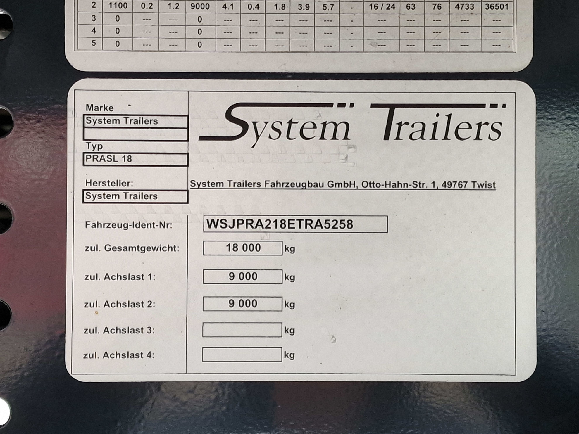 System Trailers PRASL 18