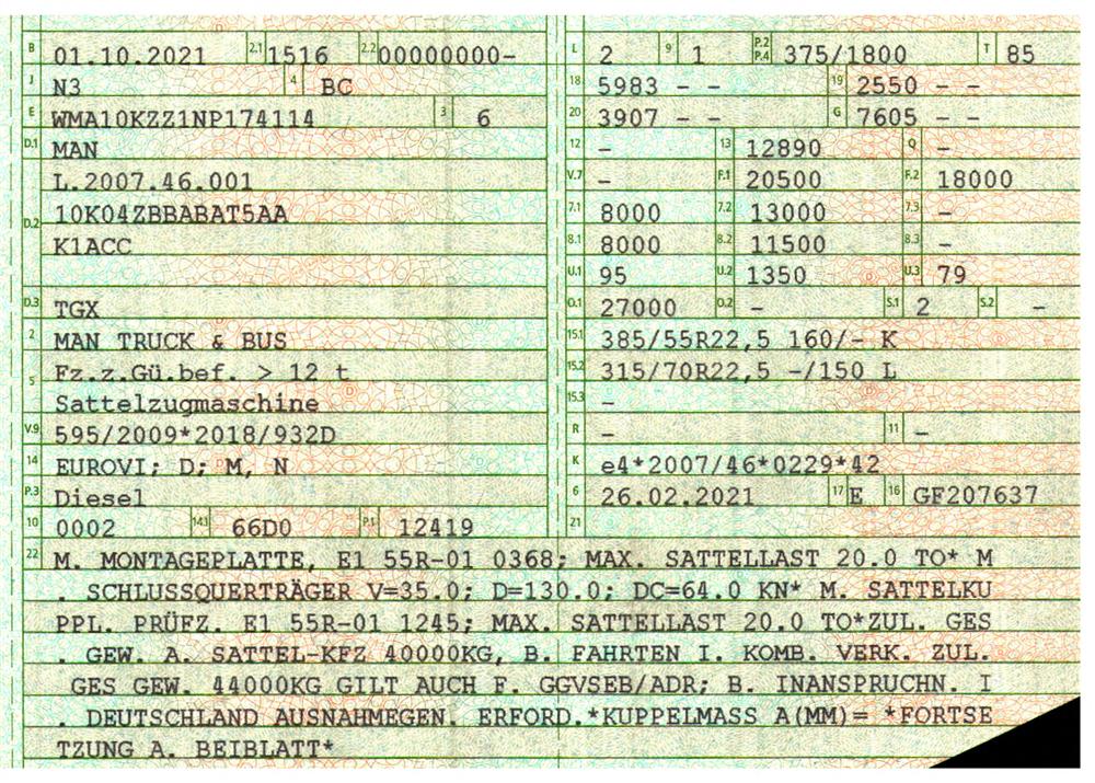 Tires: 385/55 R 22,5 ; 315/70 R 22,5