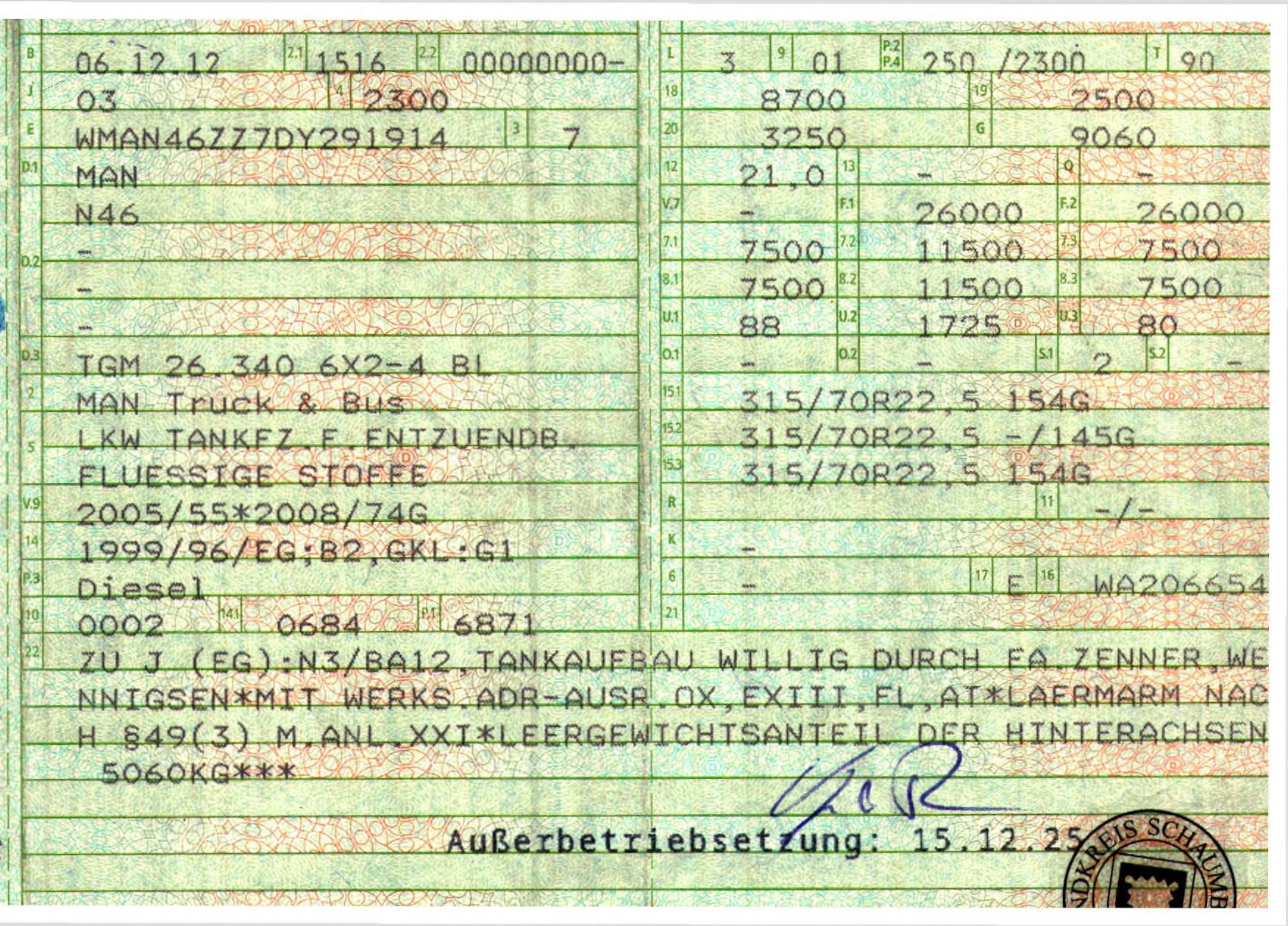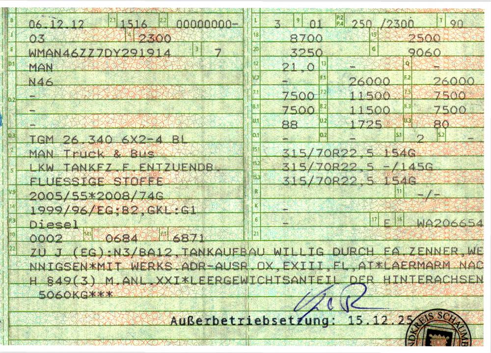 Permitted total weight (kg): 26.000