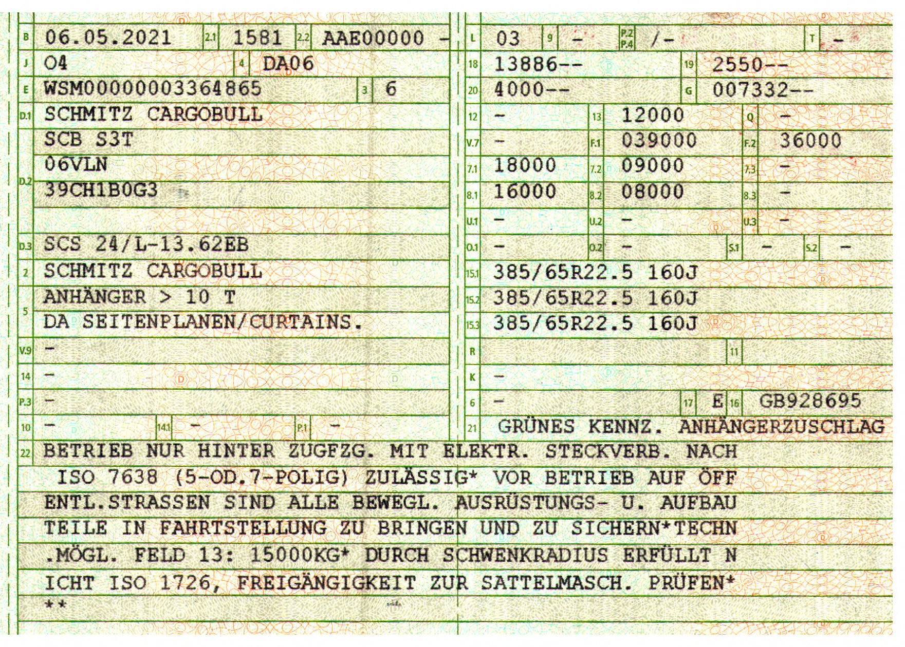 Configurazione dell'asse: 3 Assi Schmitz Cargobull